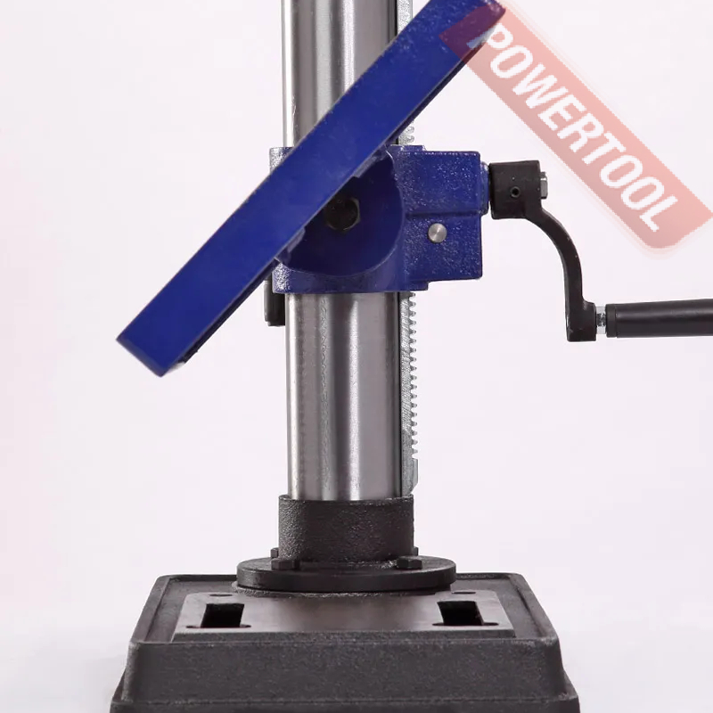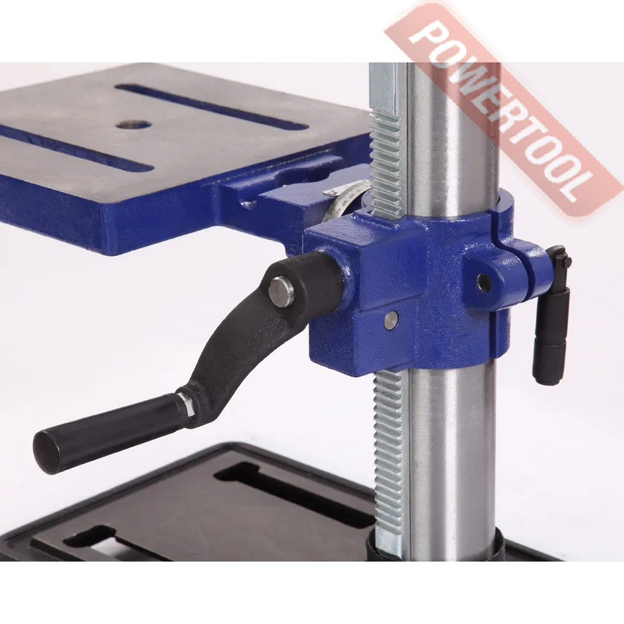 - Регулировка положения сверлильной головки. Так как данная модель является радиальной, то возможна регулировка положения сверлильной головы по высоте, относительно колонны, по горизонту и по окружности (вращается вокруг своей оси).