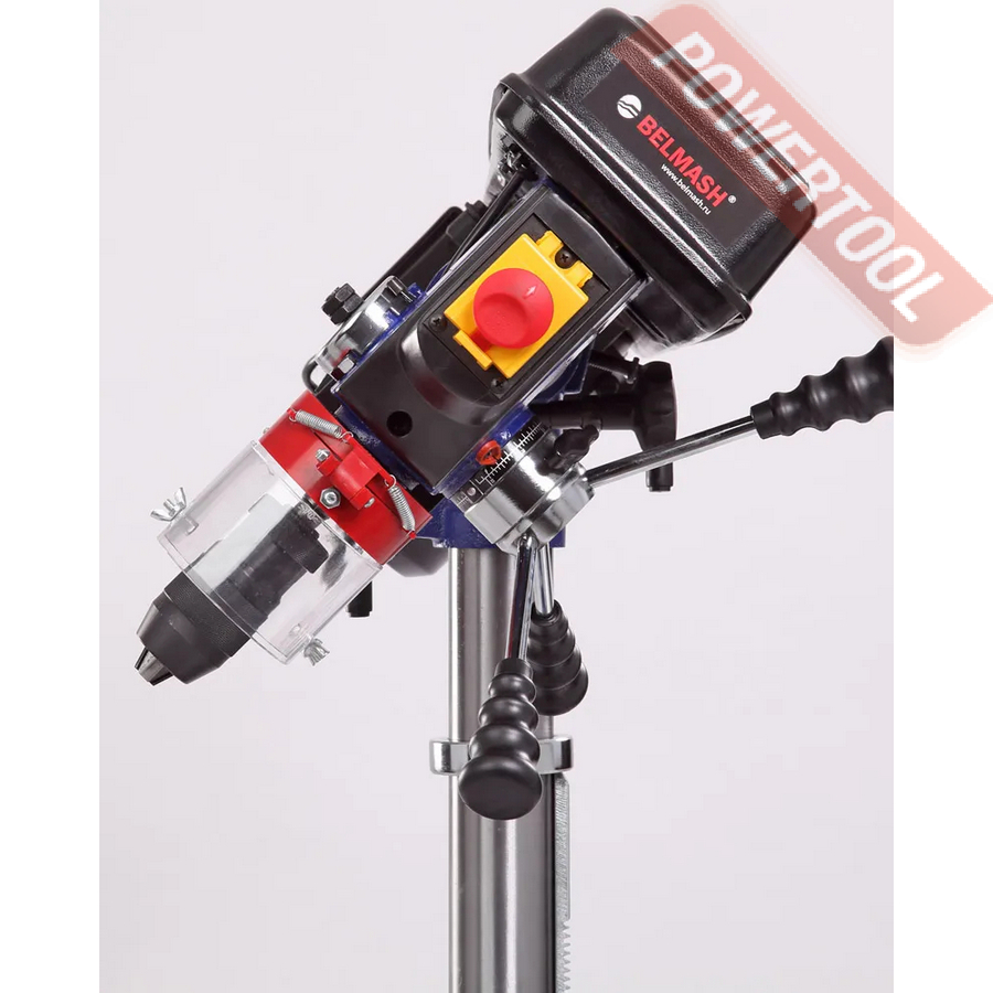- Усиленные рукоятки. Механизм подачи сверлильного патрона оборудован усиленными эргономичными рукоятками.