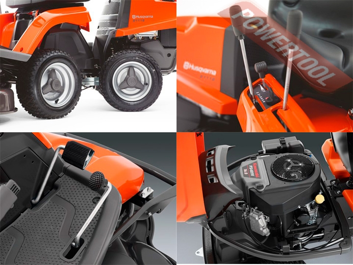 - Гидростатическая трансмиссия с педальным управлением, т.е. как на вариаторе (газ, тормоз) без переключения скоростей! Управление скоростью и направлением движения осуществляется с помощью педалей, что позволяет оператору держать обе руки на рулевом колесе и максимально контролировать процесс управления. Четыре больших колеса. Большие передние и задние колеса повышают комфорт и проходимость, а также снижают опасность повреждения чувствительных поверхностей. Поворотная задняя ось. Поворотная задняя ось обеспечивает максимальную тягу на приводные колеса, и как следствие, плавность движения даже на неровных поверхностях.