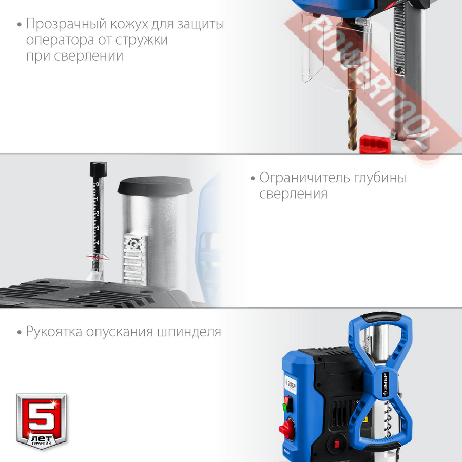 - Прозрачный кожух для защиты оператора от стружки при сверлении.
