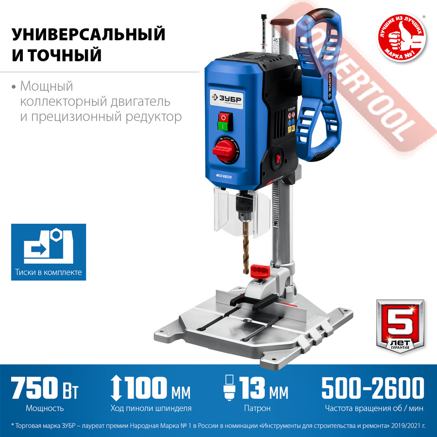 - 1. Редукторный сверлильный станок по металлу ЗУБР ВСС-П750.