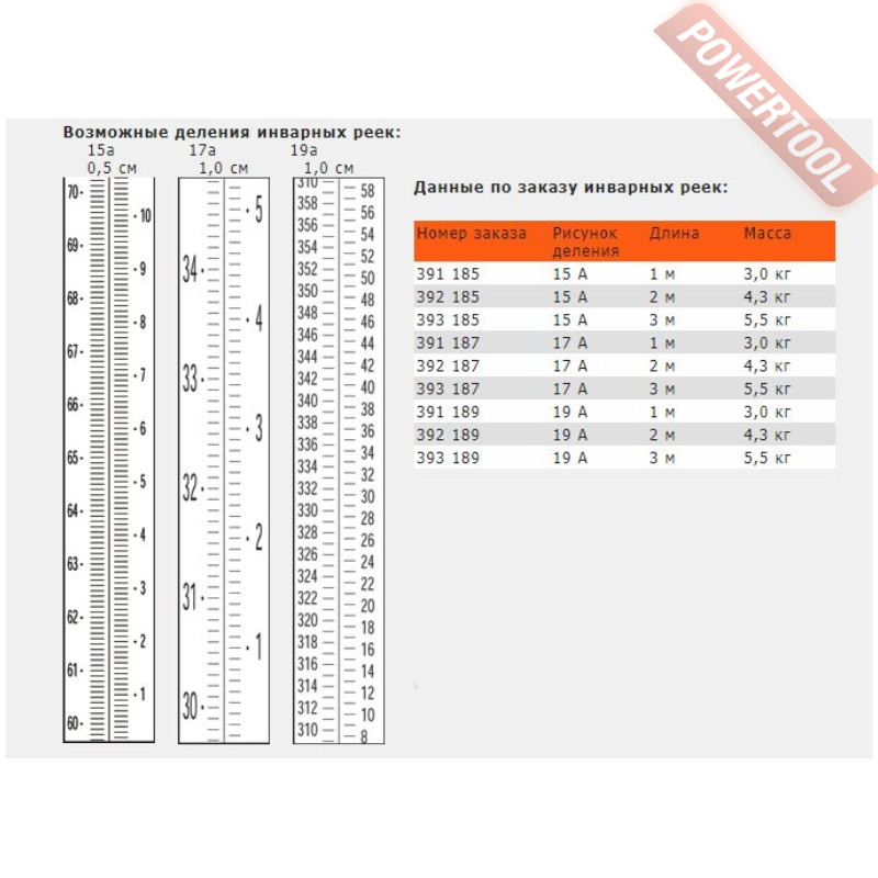 • Возможные деления инварных реек показаны на фото "Возможные деления "