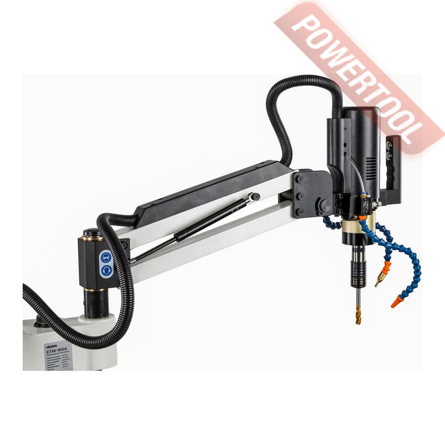 Резьбонарезной манипулятор HEDEN ETM-16 SA — электрический манипулятор с гибким позиционированием привода. В комплекте поворотный модуль, изменять расположение электрического привода: вертикальное, горизонтальное и на 360 градусов в каждом положении. Предназначен для нарезки резьбы от М3 до М16 с помощью метчиков в заготовках из металла, пластика и других материалов. Оснащен системой подачи СОЖ. Для подключения системы требуется компрессор с давлением 6-8 бар.