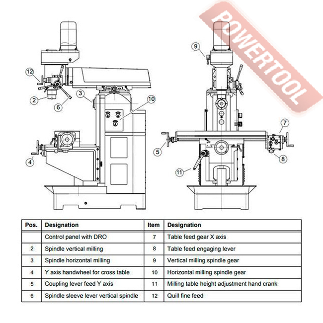 - Ось X перемещается либо с помощью маховика, либо через устройство подачи стола.
