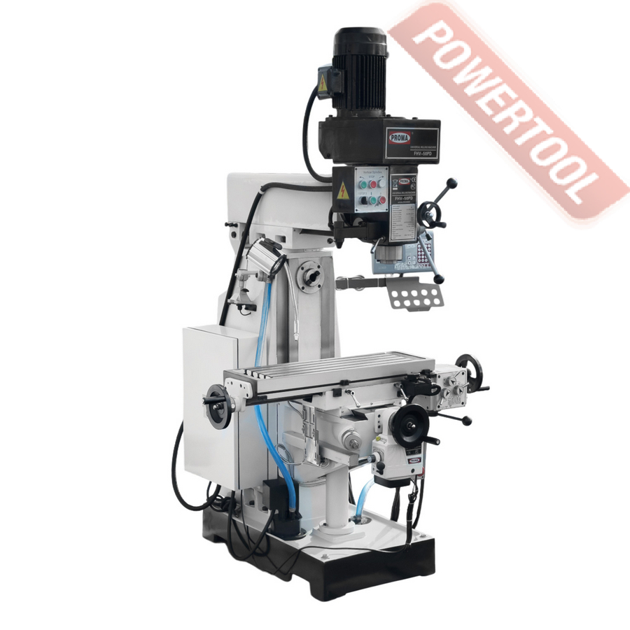 Широкоуниверсальный фрезерный станок по металлу PROMA FHV-50PD предназначен для точной обработки металлических заготовок. Станок имеет девять ступеней вращения шпинделя при горизонтальной обработке и восемь ступеней при вертикальной обработке, это увеличивает эффективность обработки деталей. Цифровое измерение облегчает работу оператора и повышает точность выполняемых работ.