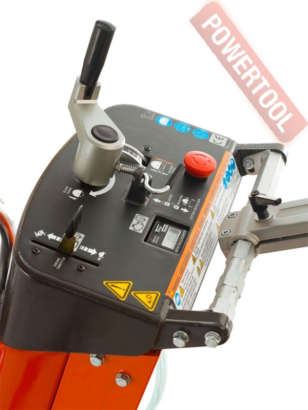 • Регулируемые рукоятки. Запатентованные регулируемые рукоятки для повышения удобства работы оператора нарезчика швов. Регулировка позволяет оператору находиться ближе к режущей кромке, чтобы было легче контролировать прямолинейность реза. Рукоятка может также складываться для транспортировки.