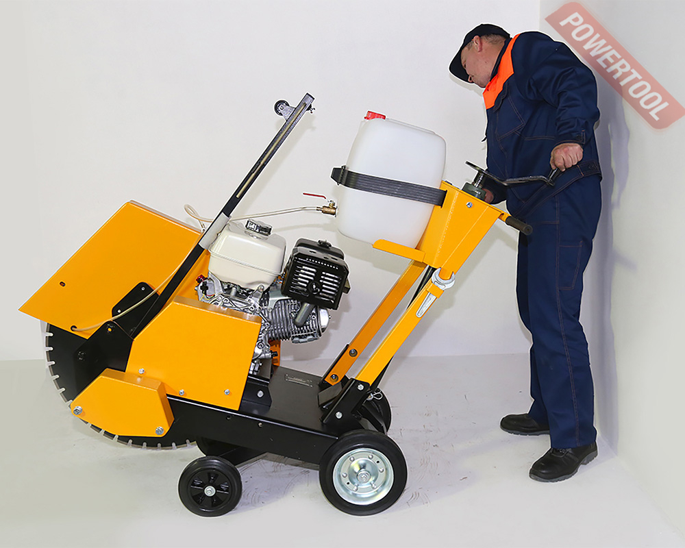 - Управление нарезчиком швов механическое, т.е. оператор толкает швонарезчик вперед самостоятельно, а также сам устанавливает глубину реза.
