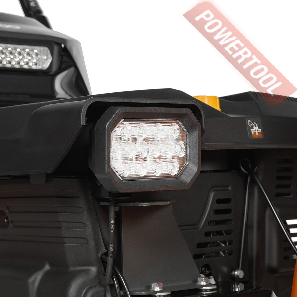 - LED освещение. Две яркие LED фары, установленные на панели оператора и передней части двигателя обеспечивают непревзойденное освещение при работе в темное время суток.