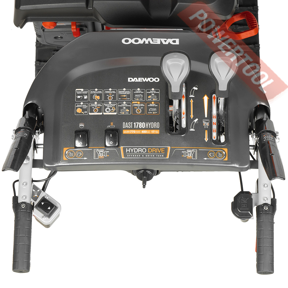 - Панель управления с системой изменения скорости движения, направления и дальности выброса снега обеспечивает комфортное управление и работу со снегоуборщиком.