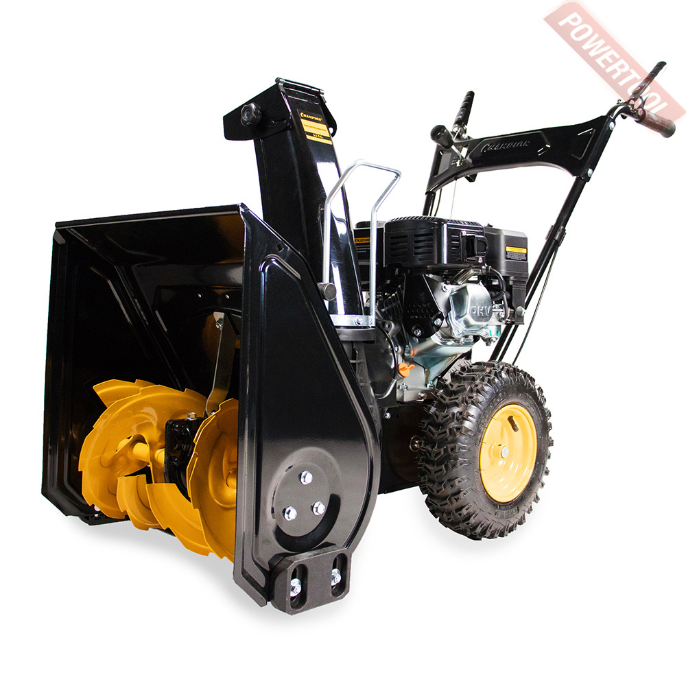- Легкий запуск снегоуборочной машины обеспечивается благодаря наличию электрического стартера, работающего от сети 220 Вольт. Таким образом, для того чтобы воспользоваться стартером, нужно просто подключиться к электрической розетке и нажать соответствующую кнопку.