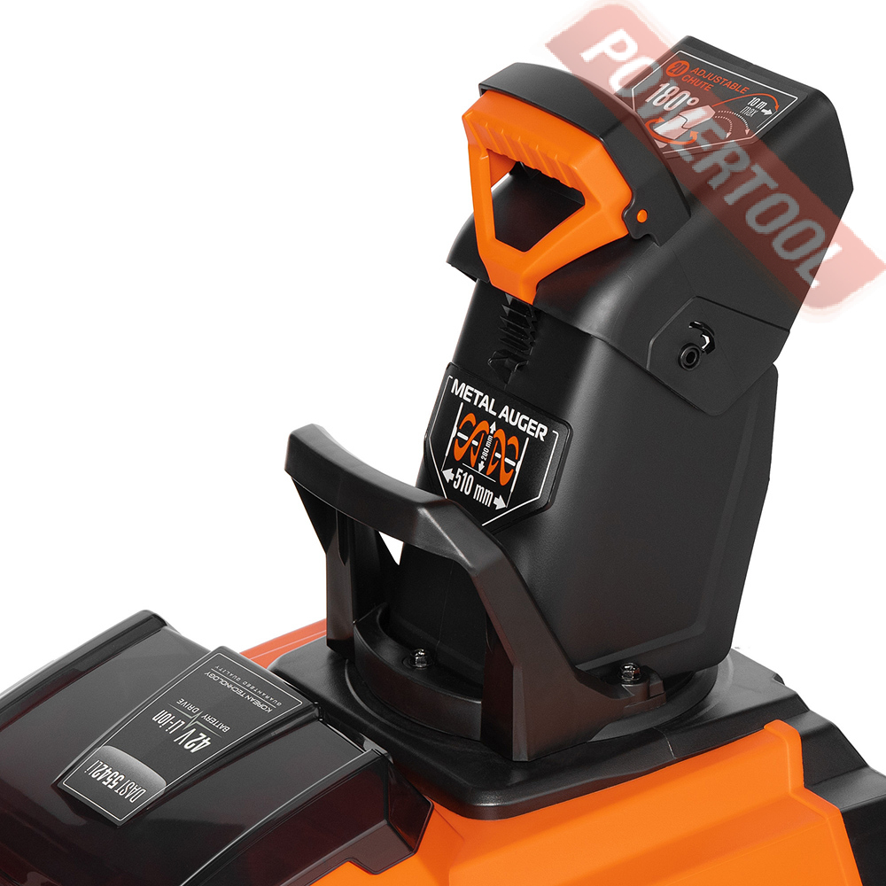 - Изменение угла выброса до 180 градусов. При помощи удобной рукоятки можно быстро изменять направление выброса снега, что позволяет максимально комфортно и быстро очистить территорию.