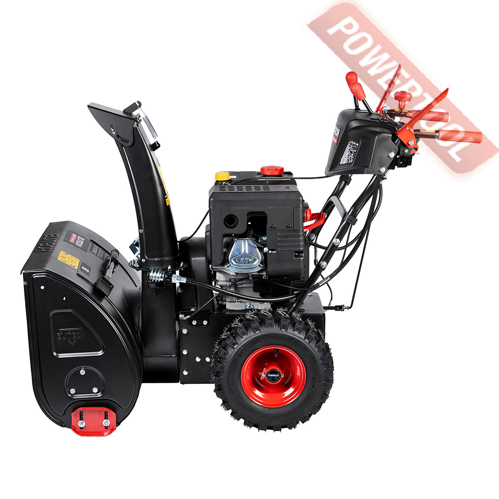 Снегоуборщик колесный самоходный ELITECH HD ST 1271LE с двух ступенчатой системой выброса снега. Используется для уборки снега с дорожек, тротуаров и других участков, с выбросом снега в сторону. Снегоуборочная машина оснащена бензиновым 4-тактным двигателем OHV коммерческого уровня, с ручным запуском и запуском от электросети. Спереди снегоуборочной машины расположен ковш с вращающимся шнегом для забора снега и последующего его выброса в сторону через разгрузочный желоб. Направление выброса снега регулируется на 190 градусов. Модель оснащена LED фарами, что облегчает её использование при эксплуатации в темное время. Эргономичная приборная панель. Подогрев рукояток.