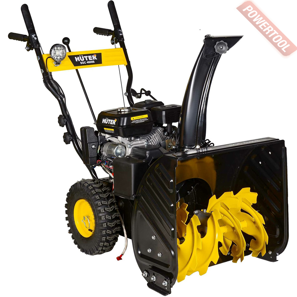 Снегоуборщик колесный самоходный HUTER SGC 4800B предназначен для расчистки как свежевыпавшего, так и уже слежавшегося снега. Машина оборудована мощным 4-тактным двигателем, ширина обработки за один проход позволяет эффективно и качественно расчищать от выпавшего снега небольшие дорожки или территорию возле загородного дома. Снегоотбрасыватель имеет двухступенчатую систему выброса снега: снег, попавший в ковш измельчается и подаётся зубчатым шнеком на крыльчатку с лопастями, которые вращаясь выбрасывают измельченный снег через патрубок в заданном оператором направлении. Наличие двух ступеней, зубчатого металлического шнека и высокоскоростной крыльчатки,позволяет разрыхлять даже слежавшийся снег.