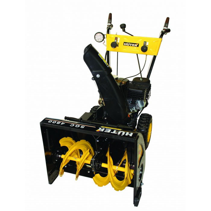 Снегоуборщик колесный самоходный HUTER SGC 4800E предназначен для расчистки как свежевыпавшего, так и уже слежавшегося снега. Машина оборудована мощным 4-тактным двигателем, ширина обработки за один проход позволяет эффективно и качественно расчищать от выпавшего снега небольшие дорожки или территорию возле загородного дома. Снегоотбрасыватель имеет двухступенчатую систему выброса снега: снег, попавший в ковш измельчается и подаётся зубчатым шнеком на крыльчатку с лопастями, которые вращаясь выбрасывают измельченный снег через патрубок в заданном оператором направлении. Наличие двух ступеней, зубчатого металлического шнека и высокоскоростной крыльчатки,позволяет разрыхлять даже слежавшийся снег.