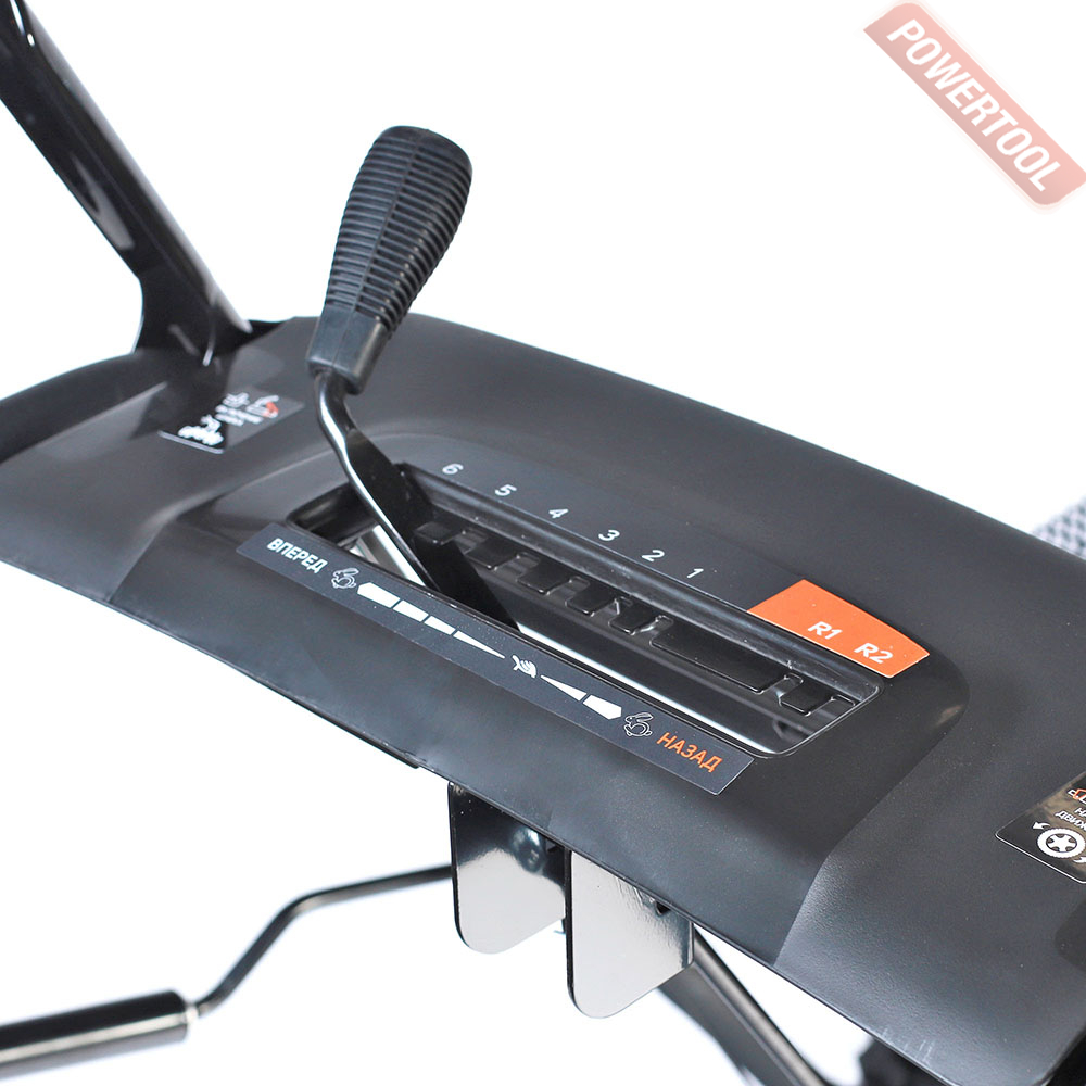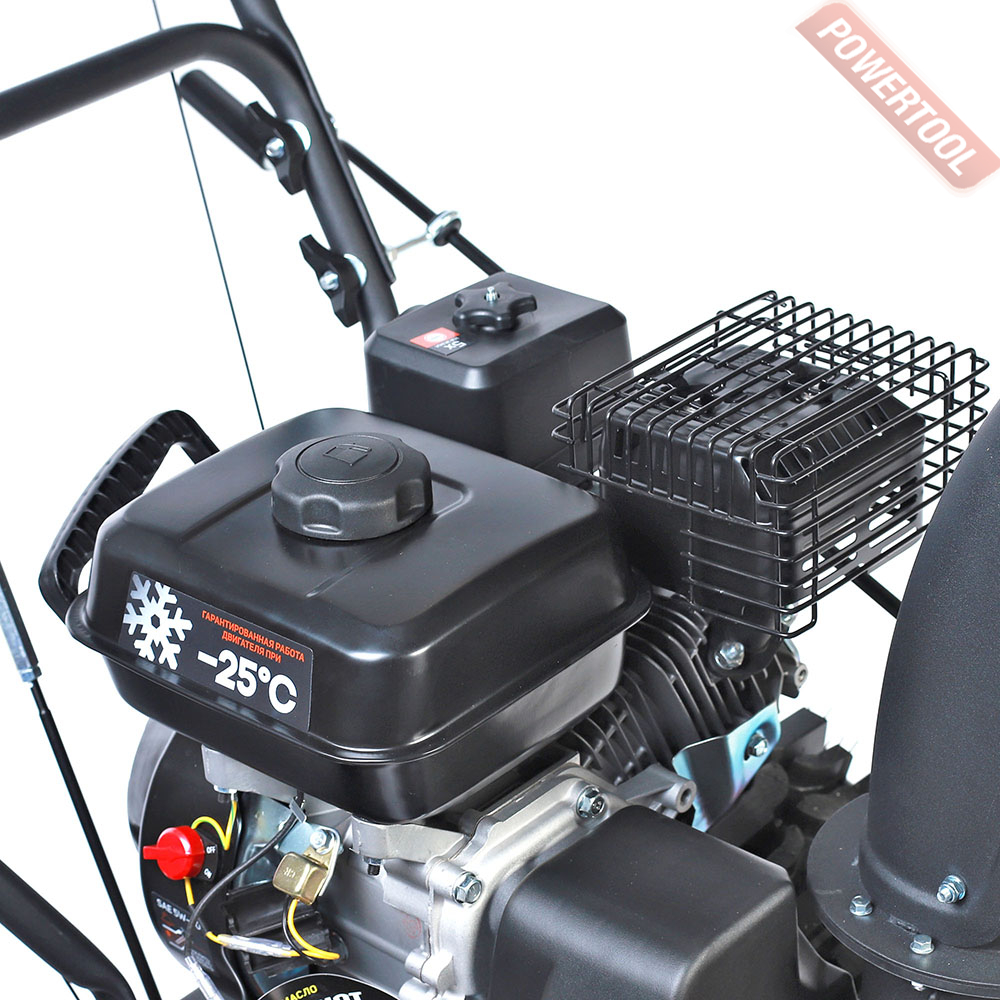 - Механический привод: 6 скоростей вперед и 2 назад. В зависимости от количества выпавшего снега трансмиссия позволяет выбрать оптимальную скорость для работы.