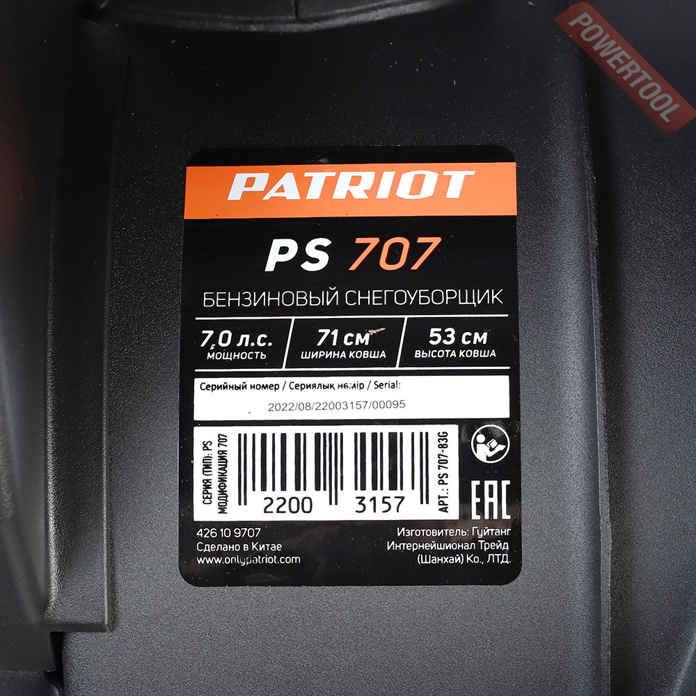 - 1. Снегоуборщик колесный самоходный PATRIOT PS 707.