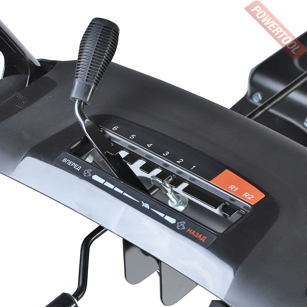 - Механический привод: 6 скоростей вперед и 2 назад. В зависимости от количества выпавшего снега трансмиссия позволяет выбрать оптимальную скорость для работы.