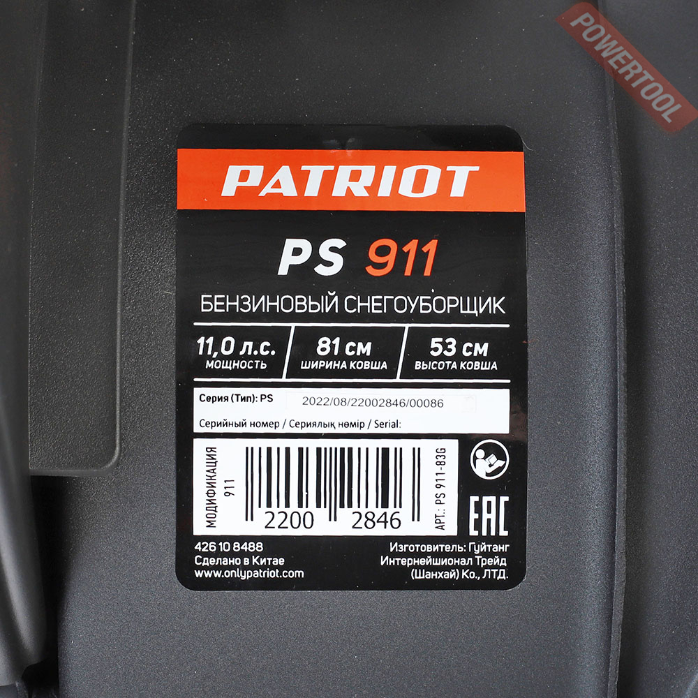 Снегоуборщик колесный самоходный PATRIOT PS 911 арт.426108488