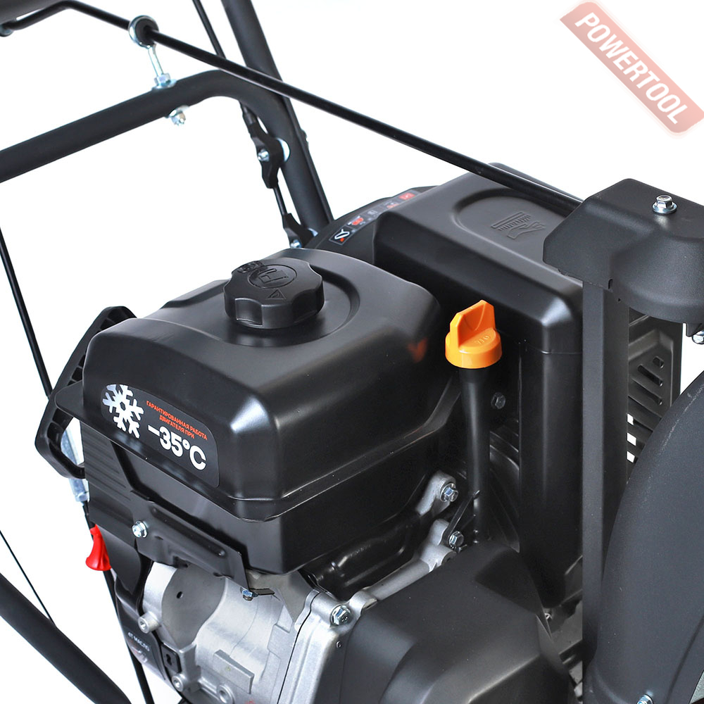 - Бензиновый 4-тактный двигатель с верхним расположением клапанов (OHV) и воздушным оxлаждением. Это надежный высокопроизводительный и, в тоже время, экономичный двигатель, который прослужит долго даже при длительной и интенсивной эксплуатации. Двигатель разработан специально для суровых российских зим и выдерживает температуры вплоть до -35 градусов.