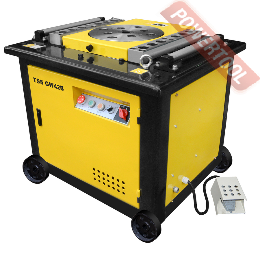 Станок для гибки арматуры ТСС TSS GW-42B – высокотехнологичное оборудование, которое используется для холодной гибки арматурной стали, сортового проката на строительных площадках, под навесом, на производствах железобетонных и металлических конструкций, таких как дорожные плиты, блоки или панели перекрытий, а также в производственных цехах.