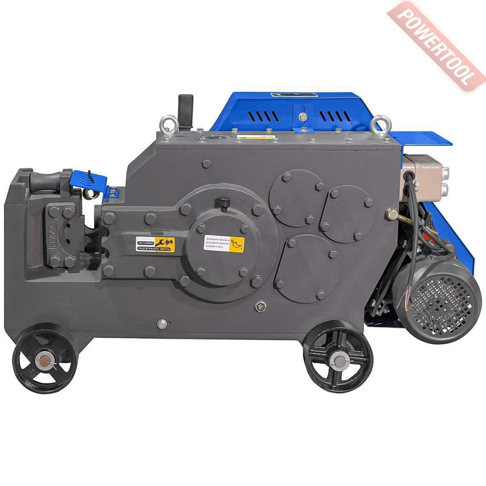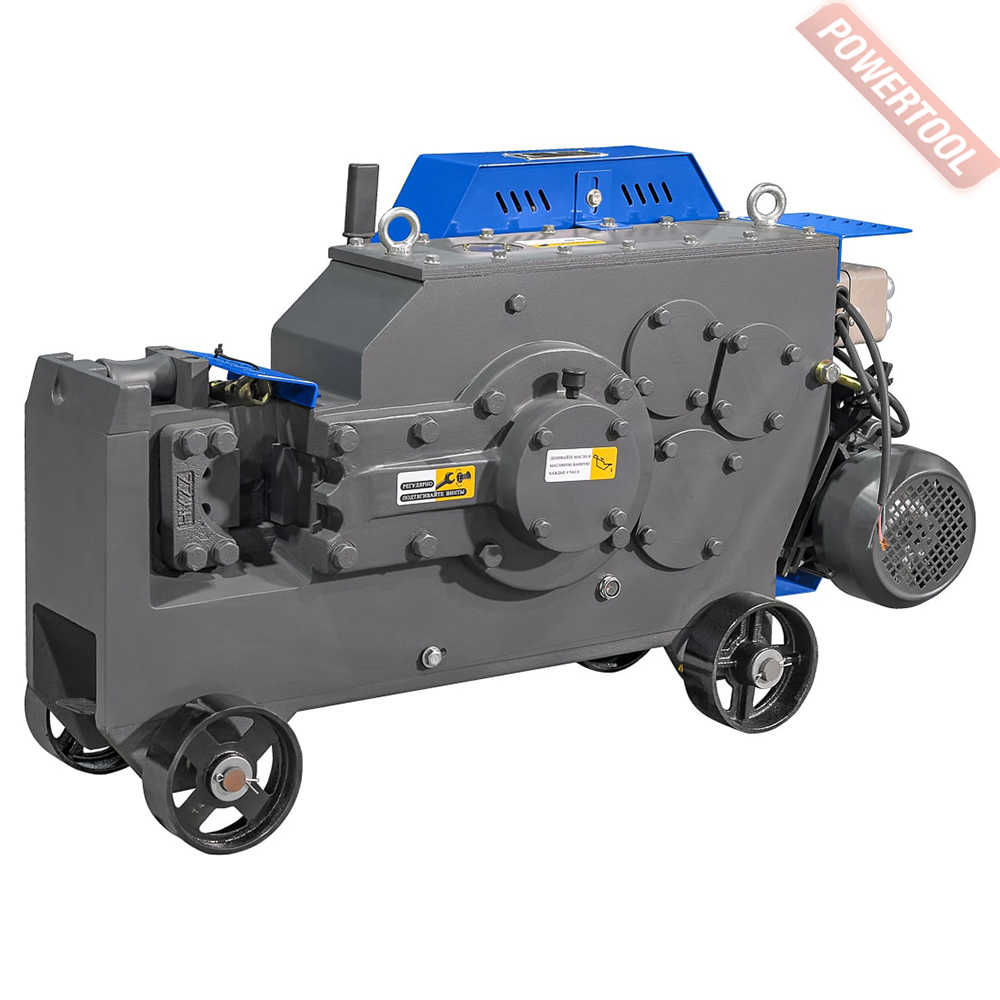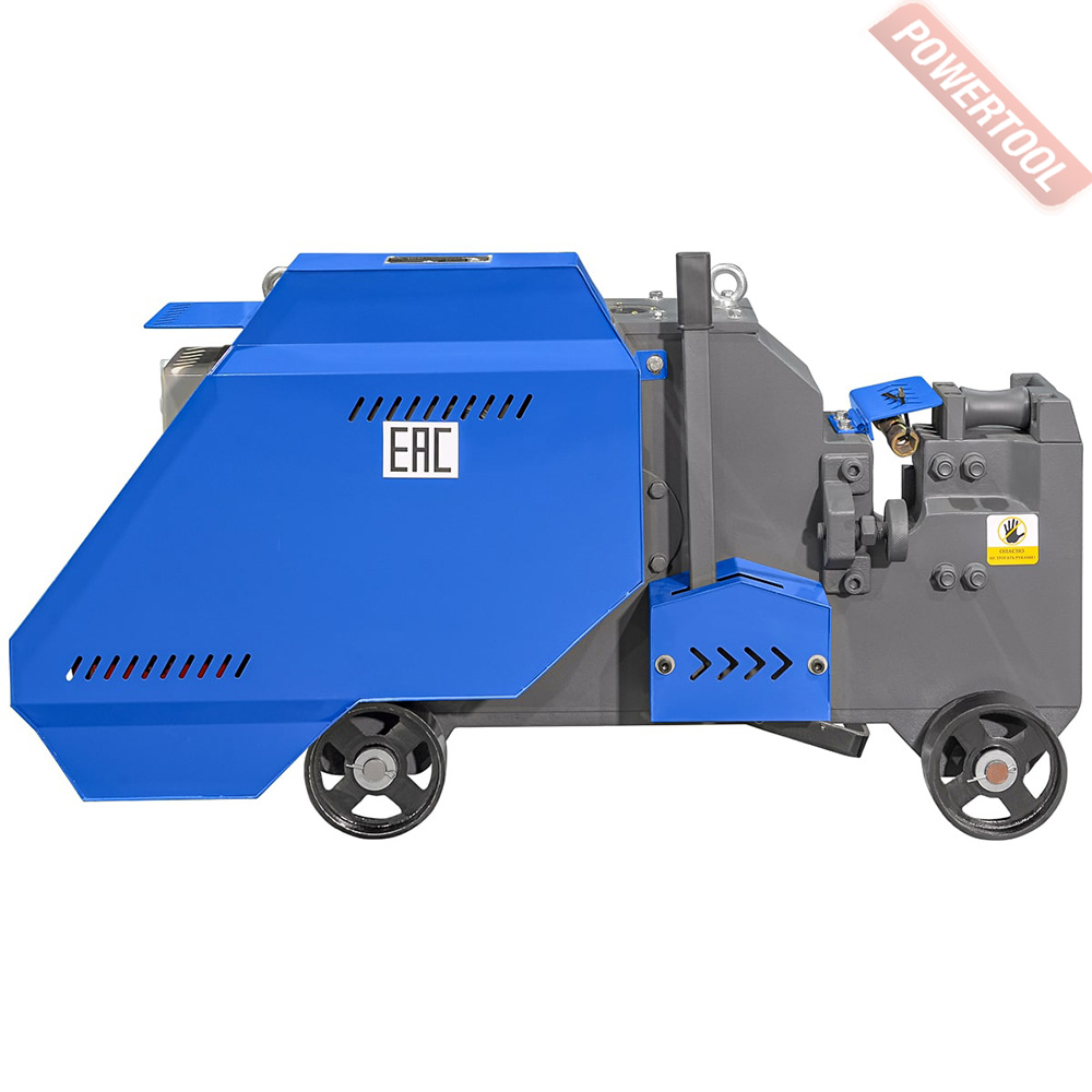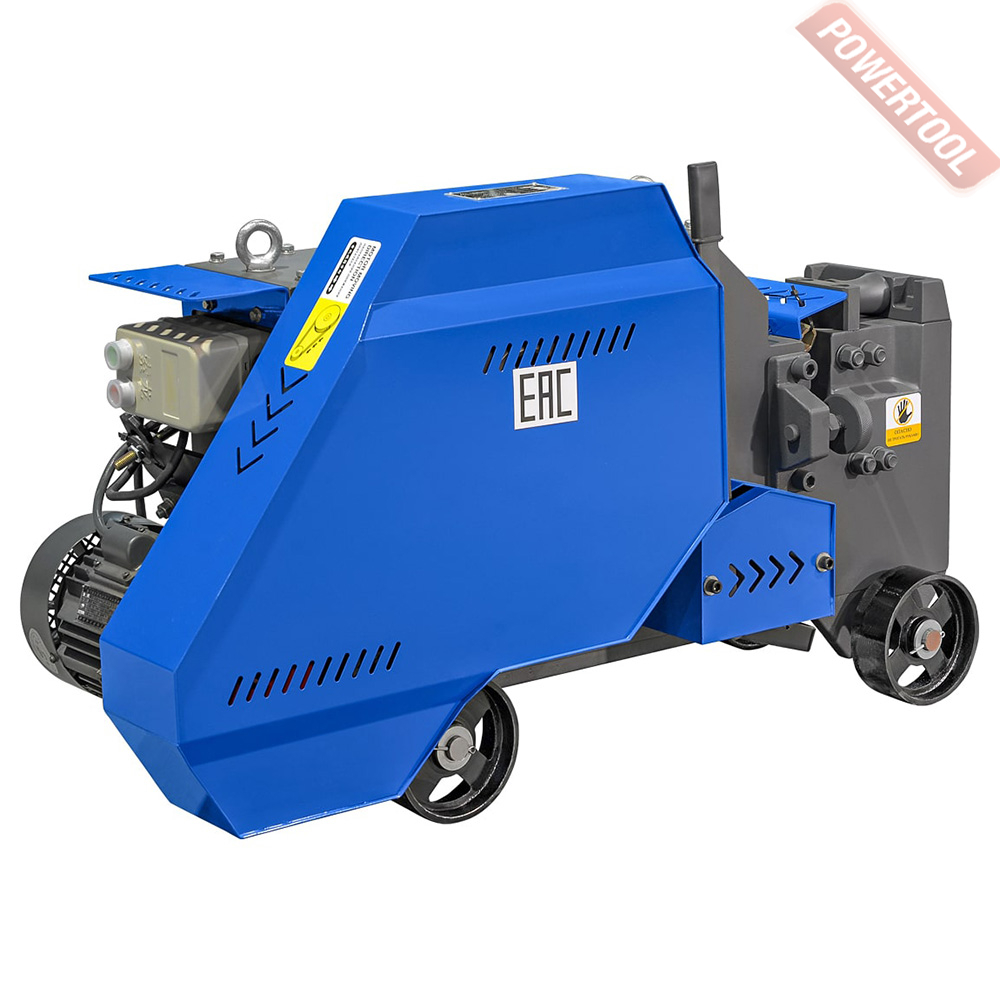 Станок для резки арматуры электрический, 3 кВт, 380 В, max диаметр резки 40 мм, частота хода ножей 32 реза/мин, вес 400 кг, габариты ДхШхВ 1240х480х680 мм, колеса, комплект ножей.