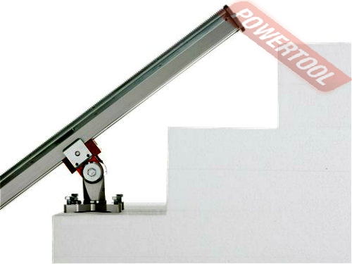 - Эффективное и гибкое универсальное крепление – новаторское приспособление, экономящее энергию и время. Подвижность узлов кронштейна позволяет закрепить рельс в необходимом положении и легко его изменять. Кронштейн также позволяет легко выполнять резку лестничных маршей и „ласточкина хвоста“ под разными углами.