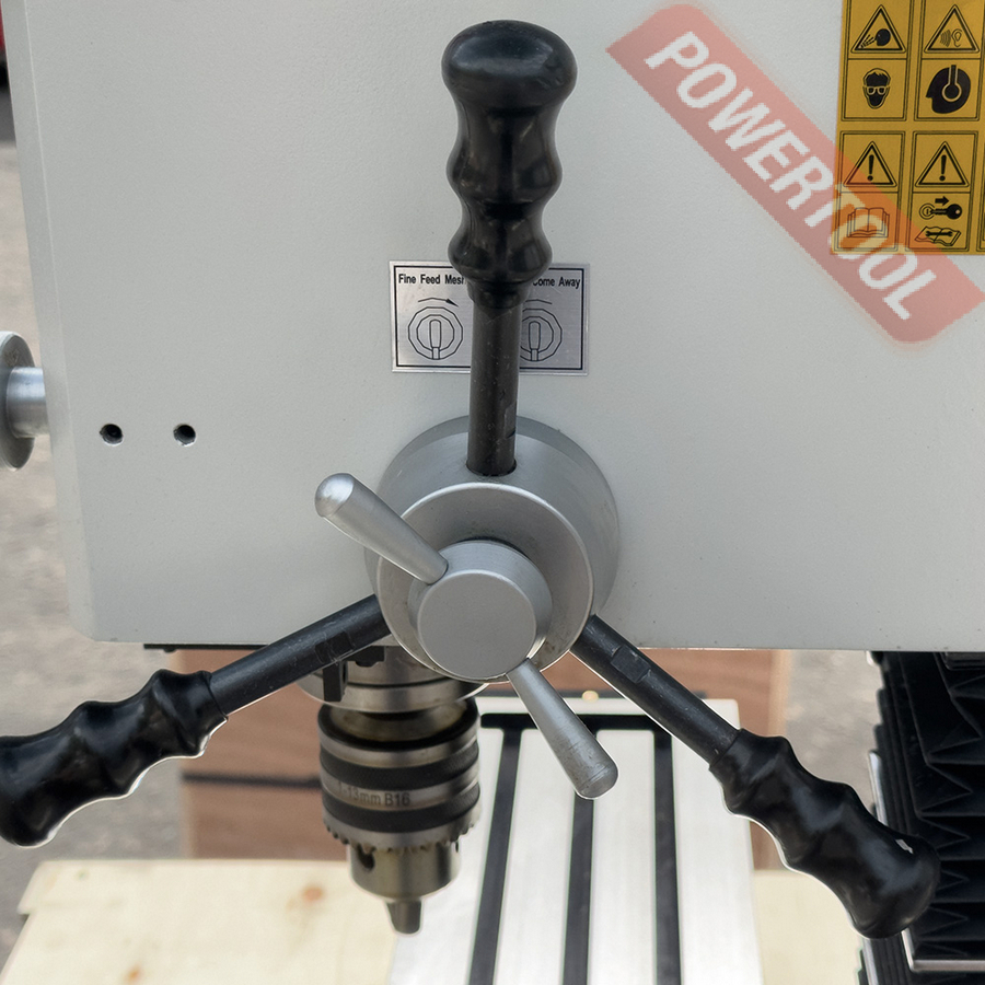 Сверлильно фрезерный станок по металлу PROMA FPV-20 представляет собой настольную конструкцию, которую необходимо установить на верстак, стол или иное прочное основание. Шестеренчатая передача уменьшает глубину станка и делает его более пропорциональным и устойчивым, что положительно сказывается на качестве и скорости работы. Небольшое расстояние от шпинделя до рабочего стола при наличии прочной колонны обеспечивает высокую жесткость конструкции и успешную обработку жестких материалов. Большая площадь основания позволяет оптимально расположить центр тяжести. При необходимости можно закрепить станок на поверхности верстака при помощи болтов. Отслеживать расположение головы можно при помощи цифрового дисплея на панели управления.