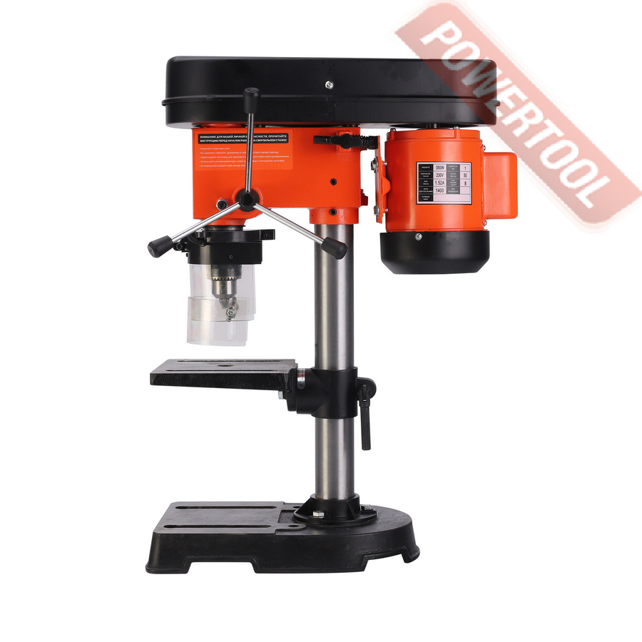 Надежный в эксплуатации асинхронный (индукционный) двигатель. Пять скоростей работы позволят произвести настройку станка индивидуально под каждый тип работ. Эргономичная рукоятка для опускания сверлильного патрона. Чугунный сверлильный стол размером 160х160 мм, регулируемый по высоте, позволяет работать с различными заготовками.
