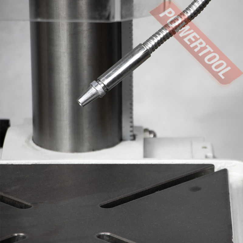 Сверлильный станок по металлу PROMA BY-3216PC/400 представляет собой практичное оборудование для серийного производства и обработки металлических деталей. Для удобства работы имеется освещение и система охлаждения. Общая высота станка достигает 1405 мм. Автоматическая подача значительно упрощает обработку деталей в промышленных объемах. Ограничение по диаметру нанесения резьбы: М24 для чугуна и М20 для стали. Прочная стальная колонна диаметром 100 мм обеспечивает жесткость конструкции и способствует передаче усилия от рукоятки к сверлу.