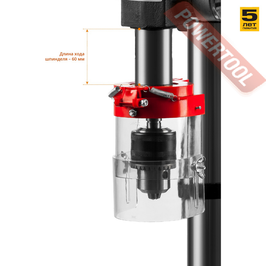 • Прозрачный кожух для защиты оператора от стружки при сверлении.