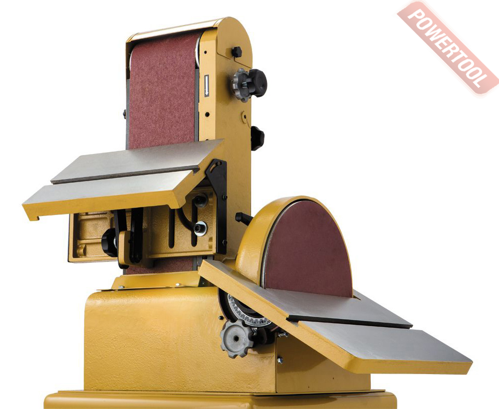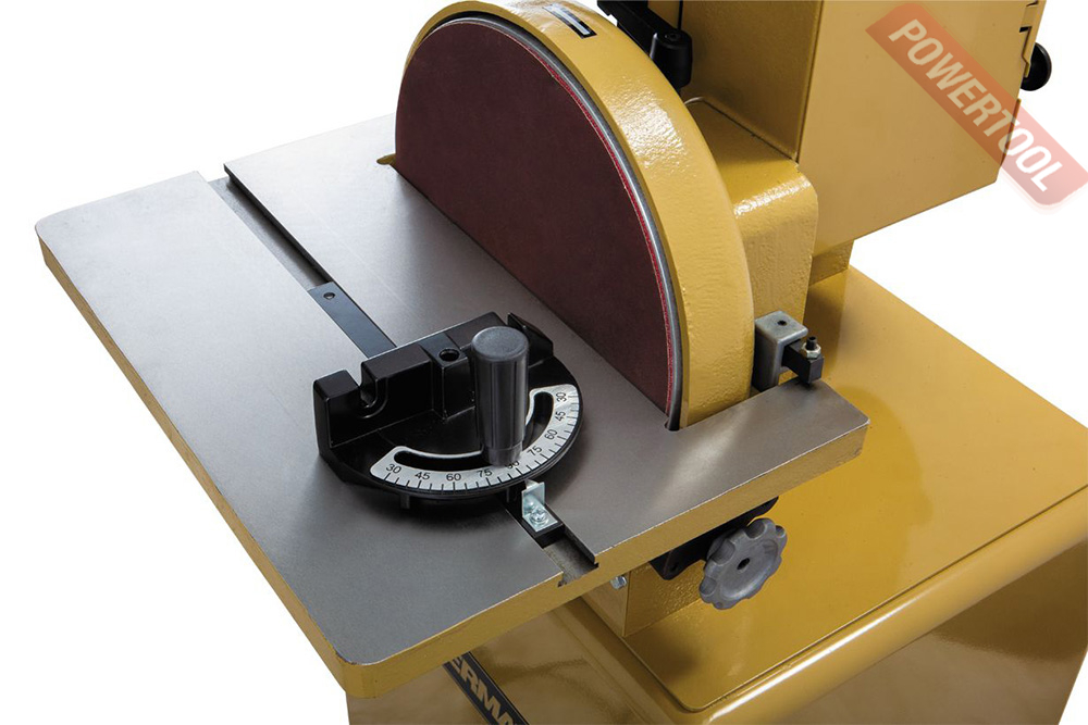 Тарельчато-ленточный шлифовальный станок POWERMATIC 31A относится к наиболее популярной в США серии POWERMATIC, такие станки характеризуются как лучшие в классе, благодаря чему признаны золотым стандартом. Модель 31А полностью соответствует марке: это мощный станок, сделанный прочно и основательно. Компоновка – напольная, в тумбе-подставке размещен мощный двигатель и 100-миллиметровый патрубок пылеотсоса. Верхняя часть корпуса станка чугунная, из этого же материала сделаны и оба рабочих стола. Каждый из них регулируется по углу наклона, причем стол тарельчатого узла поворачивается не только на 45° вниз, но и на 15° вверх, а стол ленточного можно установить продольно. Для точных работ предназначен угловой упор с направляющей вдоль Т-образного паза, который предусмотрен у обоих столов. Ленточный узел можно установить вертикально, горизонтально или в любом промежуточном положении. Запас мощности и массивная конструкция с большой жёсткостью обеспечивают точность и отсутствие вибраций, даже при выполнении тяжёлых работ.
