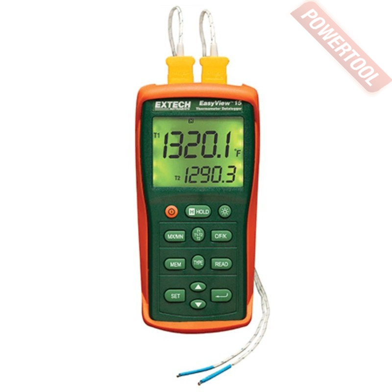 Термометр контактный EXTECH EA15 - 2-канальный термометр для измерений с помощью 7 типов термопар: J, K, E, T, R, S и N и способный выполнять роль регистратора благодаря встроенной памяти на 8800 значений и интерфейса RS-232 для передачи полученных данных на ПК.