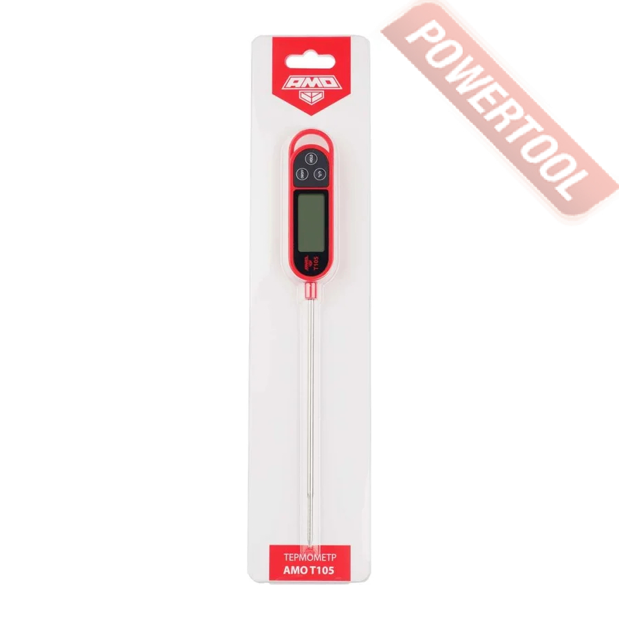 Кухонный термометр AMO T105 оборудован большим LCD-дисплеем, на котором крупными цифрами отображается показатель температуры. Важное преимущество модели - изображение остается четким и ярким даже при низком уровне заряда батареи.