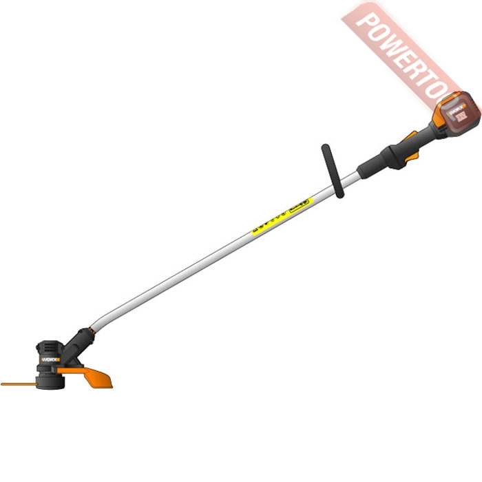 - Триммер аккумуляторный WORX WG168E обладает сверхмощным аккумулятором 40В 2Ач способным составить конкуренцию обычным электрокосам мощностью до 2 кВт