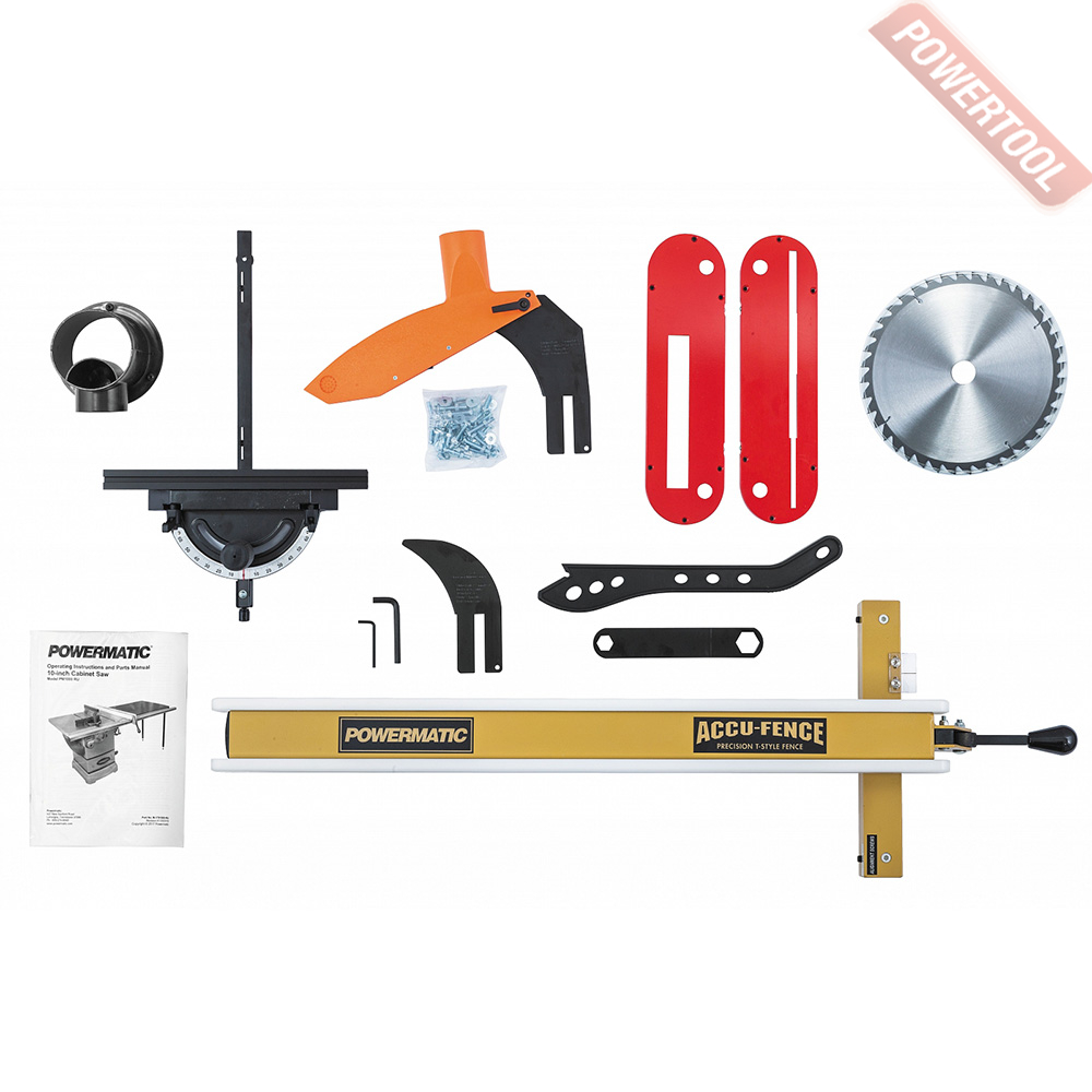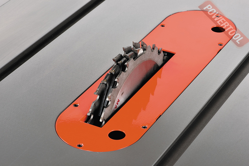 В стандартную комплектацию PM1000 входят два расширителя стола, выполненные из чугунного литья, а также жесткий и точный в работе параллельный упор с эксцентриковым зажимом. Упор перемещают вдоль специальной направляющей, что позволяет распиливать заготовки значительной ширины, даже большей чем размер стола с расширителями. Для выполнения резов под углом прилагается скользящий упор, который монтируют в один из двух Т-образных пазов.