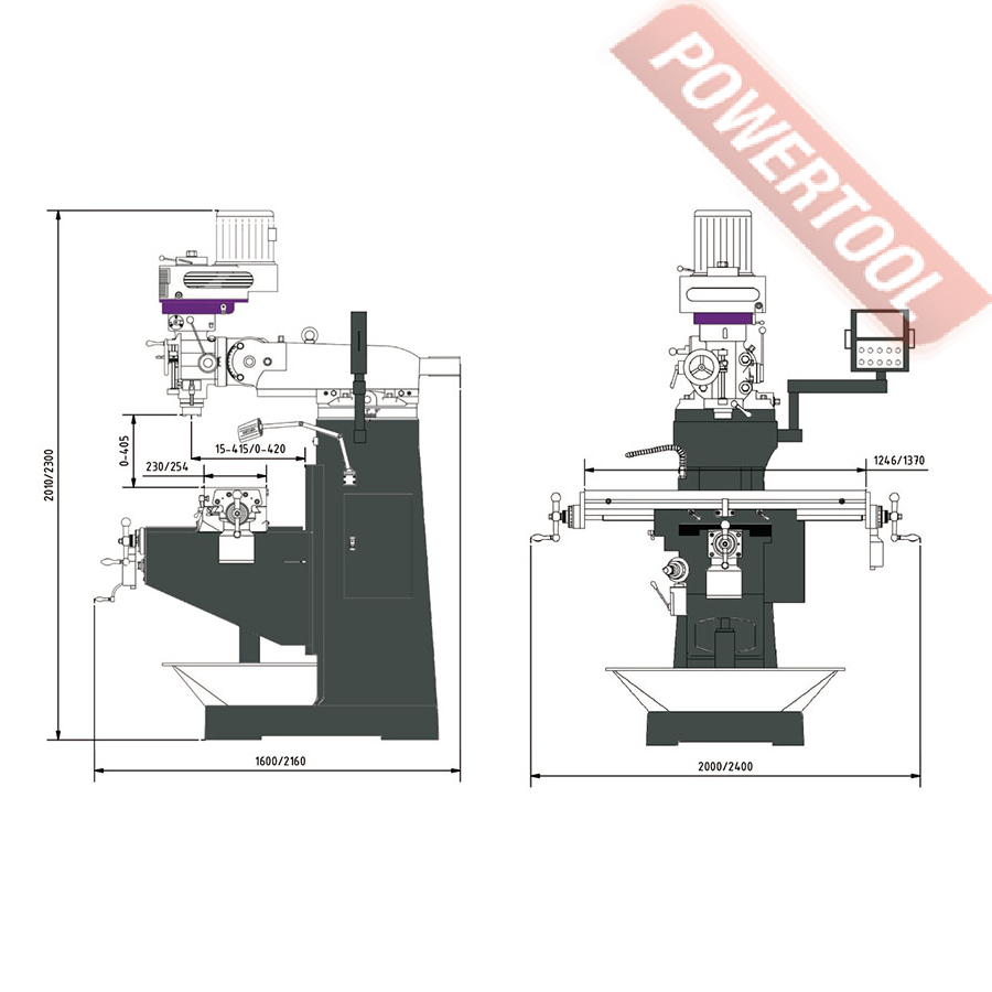 - Поворотная на +/-45 градусов сверлильно-фрезерная головка.