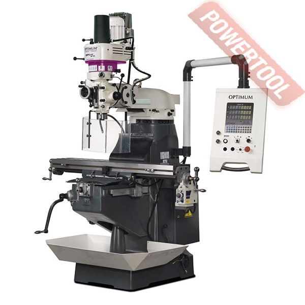 Универсальный фрезерный станок по металлу OPTIMUM MF 2V для профессионального использования. Бесступенчатый привод с электронным преобразователем частоты и цифровым 3-осевым индикатором положения DPA 21.