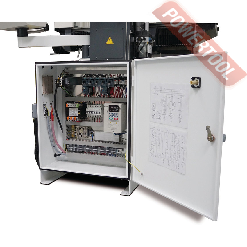 - Автоматическая подача по осям X-, Y- и Z, с возможностью плавной регулировки посредством электронного джойстика на панели управления.
