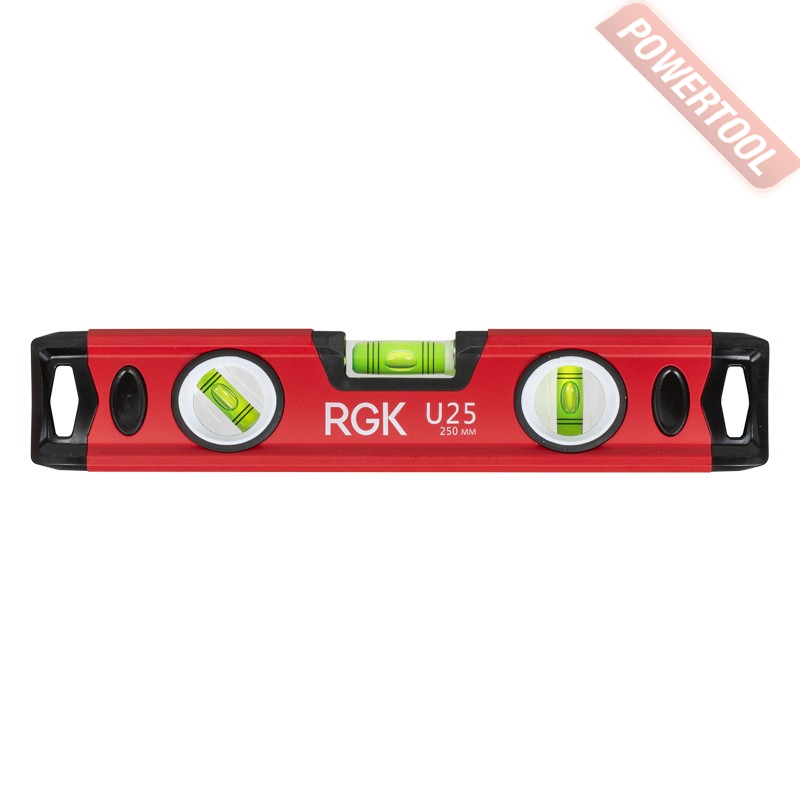Уровень строительный магнитный RGK U25 - уровень длиной 25 сантиметров оснащен двумя магнитами на противоположных сторонах для крепления уровня на металлической поверхности, чтобы освободить руки при проведении разметки.