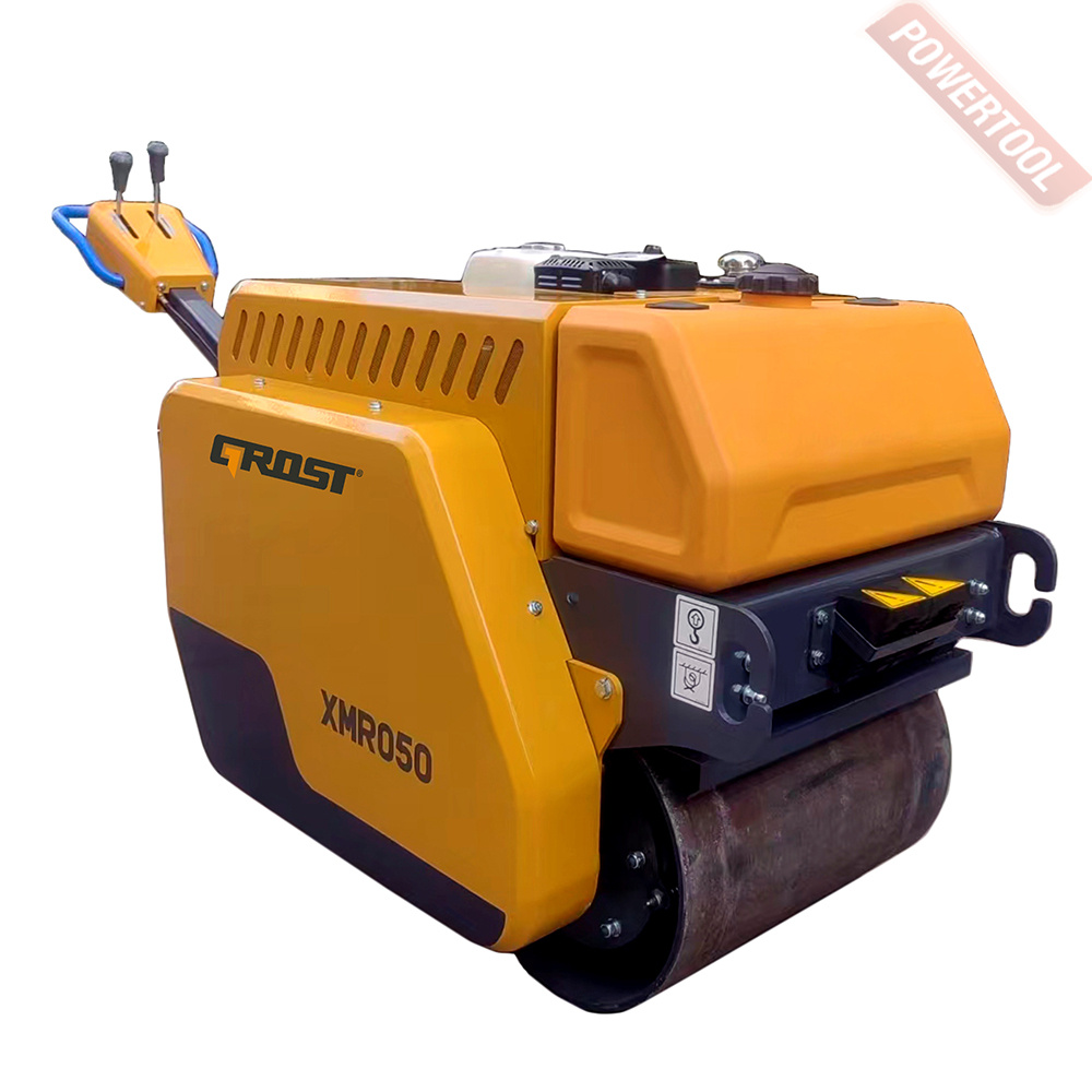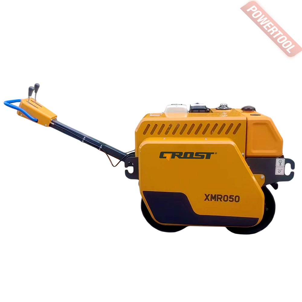 Виброкаток ручной двухвальцовый GROST XMR050 - строительное оборудование, предназначенное для уплотнения грунтов и асфальтовых покрытий.
