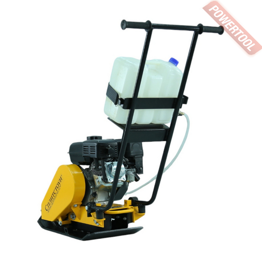 Виброплита комплектуется быстросъемными транспортными колесами (устанавливаются в специальные гнезда), наушниками, баком для воды и системой орошения.