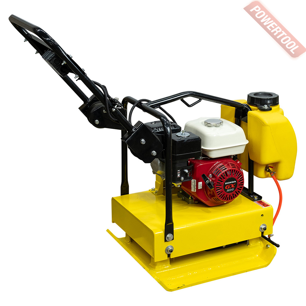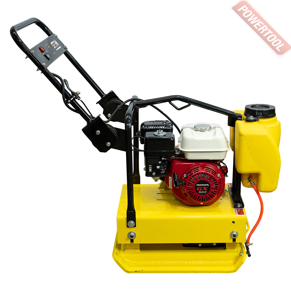 Виброплита прямого хода, вес 126 кг, усилие уплотнения 30 кН, рабочая поверхность 620х500 мм, механический привод, скорость перемещения 15-20 м/мин, 4-тактный бензиновый двигатель Honda GX160 объемом 163 куб.см и мощностью 4,8 л.с., топливный бак 3,1 л, расход топлива 1,4 л/ч, емкость картера 0,6 л, размер ДхШхВ 690х560х710 мм, транспортировочные колеса, система орошения с баком для воды.