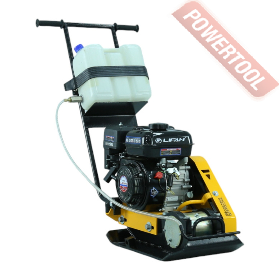 Виброплита прямого хода, вес 80 кг, рабочая ширина 400 мм, усилие уплотнения 13 кН, механический привод, скорость перемещения 20 м/мин, бензиновый двигатель Honda GX160 объемом 163 куб.см и мощностью 4,8 л.с., топливный бак 3,1 л, расход топлива 1,4 л/ч, емкость картера 0,6 л, защитная рама, размер 675x400x911 мм, система орошения с баком для воды 7,6 л, транспортировочные колеса.
