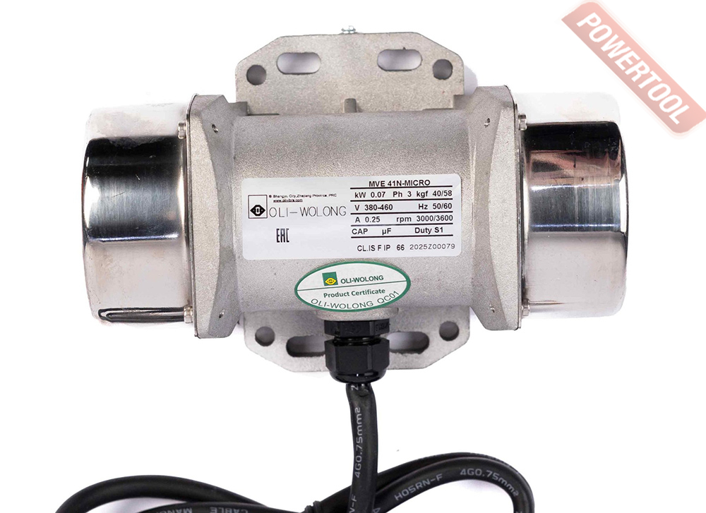 Внешний площадочный вибратор OLI MVE 41/3E-Micro 380V имеет небольшой размер и состоит из электродвигателя, заключенного в прочный алюминиевый корпус, с эксцентриковыми грузами, установленными на обоих концах вала. Подходит для виброоборудования или бункера небольших размеров, обеспечивая тем не менее значительную центробежную силу.