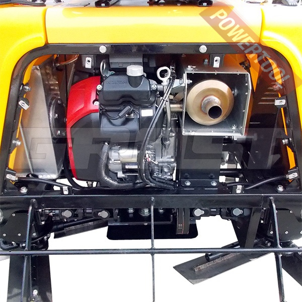 Затирочная машина по бетону двухроторная бензиновая GROST ZMD-1000 предназначена для механизированного заглаживания и затирки бетонных полов и покрытий на больших площадях. На первичной стадии обработки для сглаживания неровностей и перепадов используются диски. На финишном этапе обработки для устранения мелких неровностей поверхности используют лопасти, с каждым следующим проходом увеличивая угол наклона лопастей. Имеет в наличии восемь лопастей,что позволяет получить гладкую и ровную поверхность. Оборудована креслом для оператора и удобной системой управления. Данную модель по достоинству оценят профессионалы. Безопасная и удобная машина с функцией определения присутствия оператора - не надо постоянно держать зажатой педаль при работе, при отсутствии оператора в кресле машина выключается. Пластиковые элементы корпуса обеспечивают привлекательный внешний вид и в отличие от металлических корпусов не ржавеют. Машина укомплектована мощным бензиновым двигателем HONDA GX690 мощностью 22,1 л.с. (16,5 кВт) с электрическим запуском.