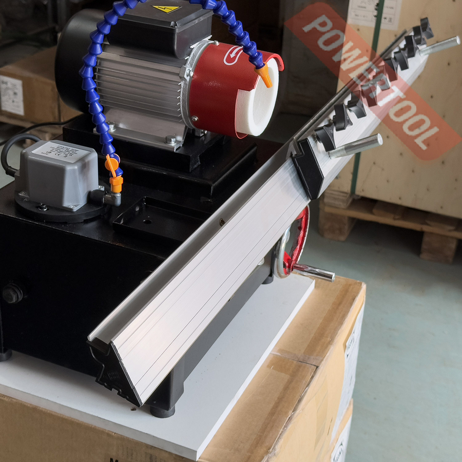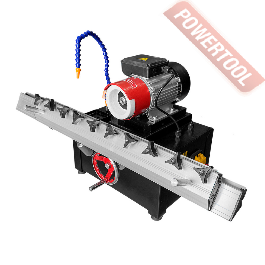 Заточной станок для заточки строгальных ножей, мощность 25 Вт, напряжение 220 В, шлифкруг 100х20х50 мм, max длина ножа 630 мм, водяное охлаждение, число оборотов 2800 об/мин, угол поворота направляющей 23-55 градусов, угол поворота шпинделя 35-67 градусов, вес 65 кг, шлифкруг 100х20х50 мм, система подачи СОЖ.